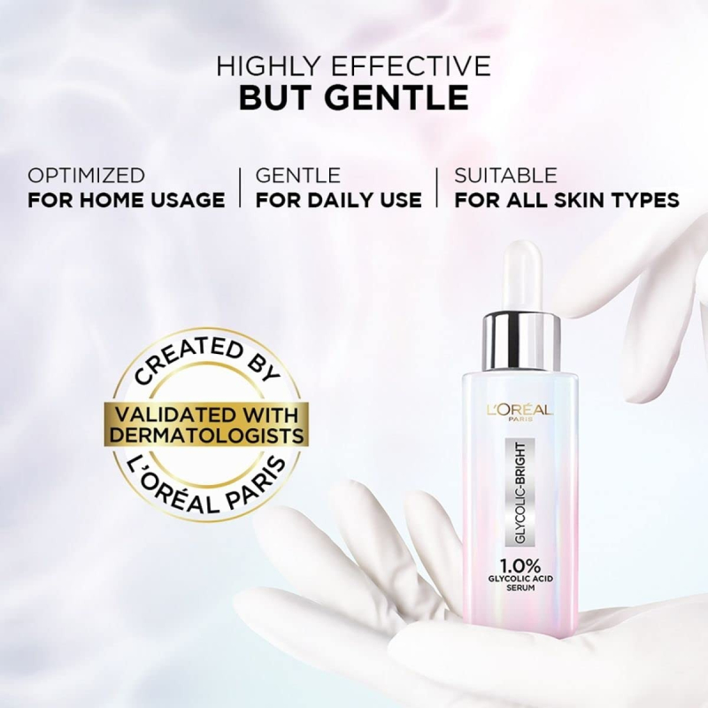 • Contents: 1x L'Oréal Paris Glycolic Bright Skin, Brightening Serum, 1% Glycolic Acid Serum, Anti-Dark Spot, Reveals Even Skin Tone, Volume: 15ml