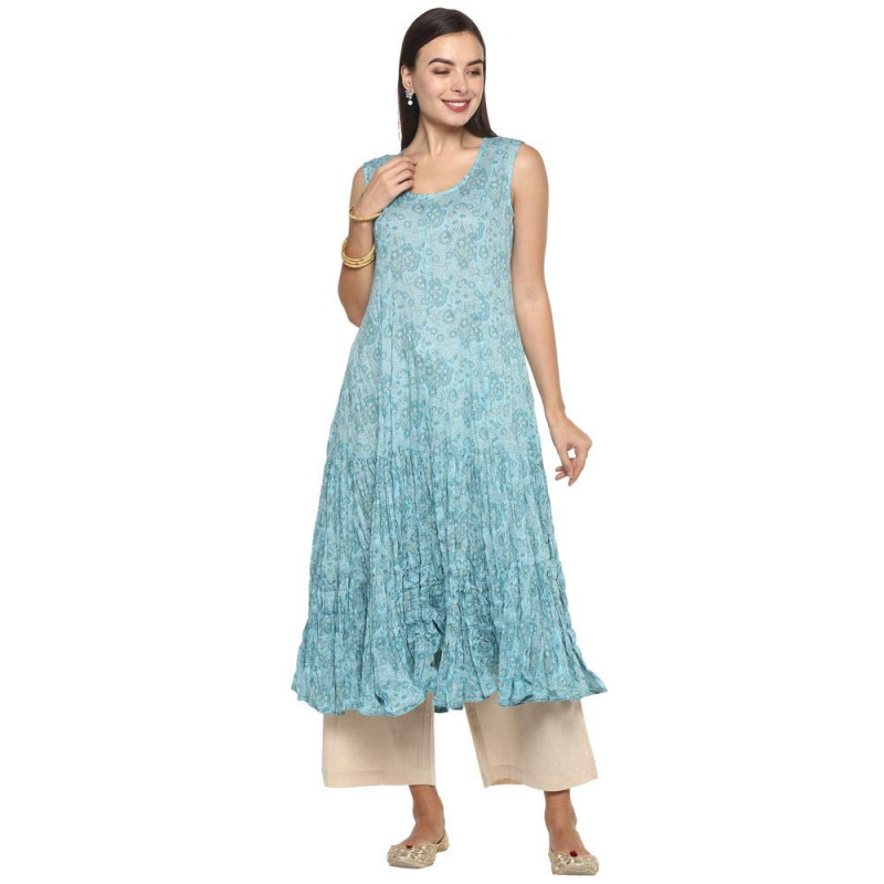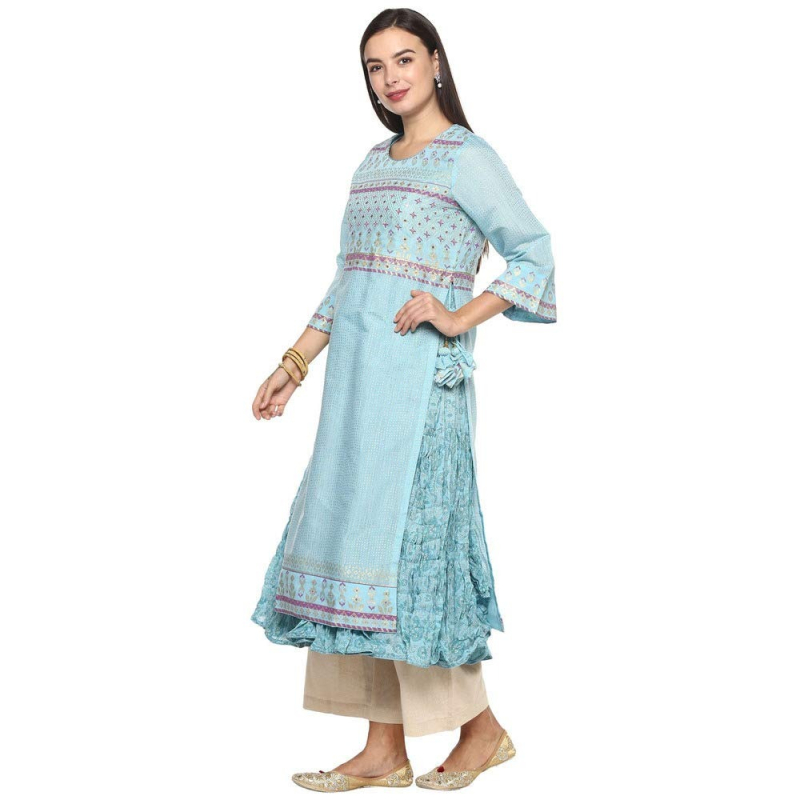 BIBA المرأة حققت الرقبة المطبوعة كورتي مع الداخلية