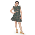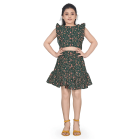 Girl’s Dark Green Pinafore Georgette Top with Asymmetric Skirt Clothing Set