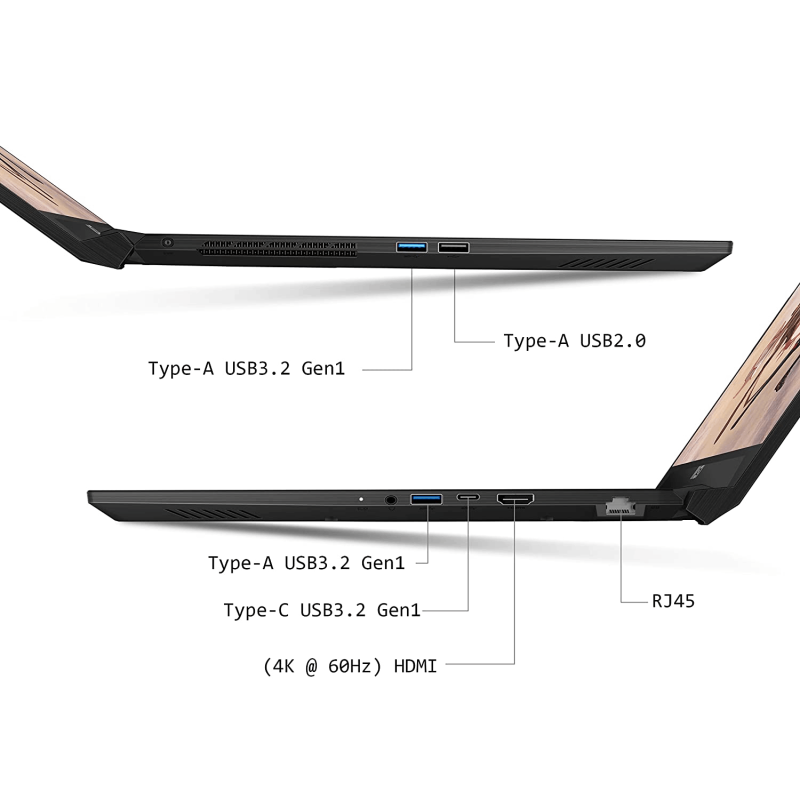 • "1x Type-C USB3.2 Gen1 2x Type-A USB3.2 Gen1 1x Type-A USB2.0 1x RJ45 1x (4K @ 60Hz) HDMI"